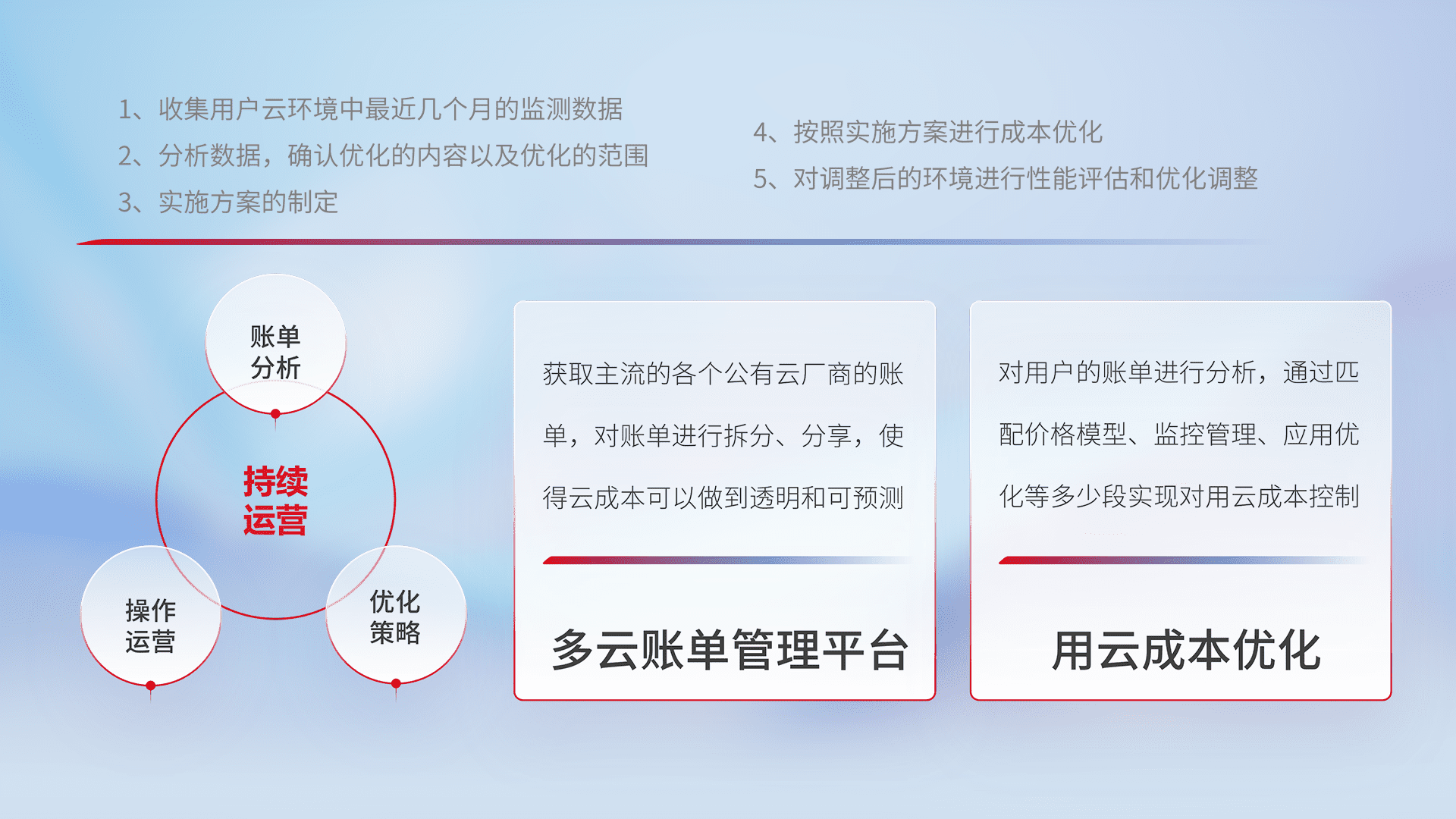 监控业务系统资源开销,,对资源的消耗精确计量,,实现费用的透明化管理,,,,不断提升资源使用率,,,,调整资源购买方式,,降低资源费用成本,,用云成本可预测、、、、用云费用可优化,,,云资源配额有据可依。。